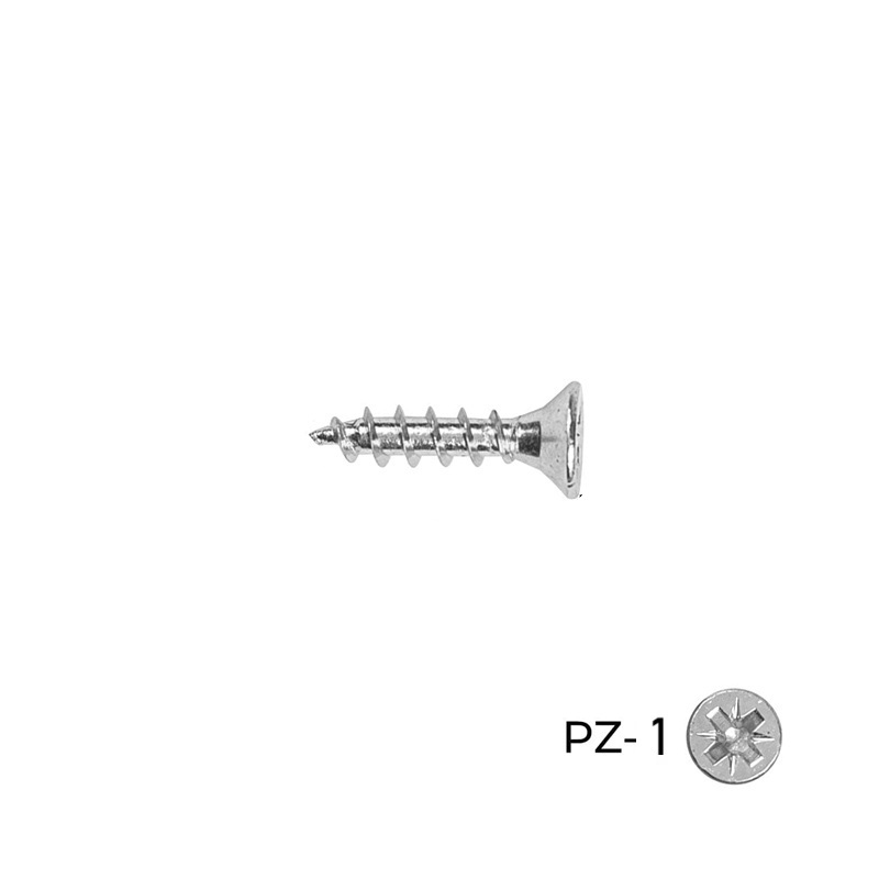 Șurub universal din oțel, finisaj alb-zincat, cu cap înecat și amprentă PZ-1, ideal pentru prinderi curate și rezistente în PAL, MDF și lemn masiv.